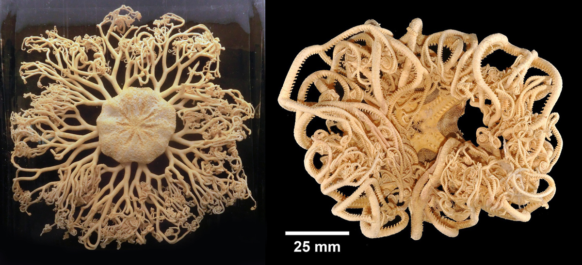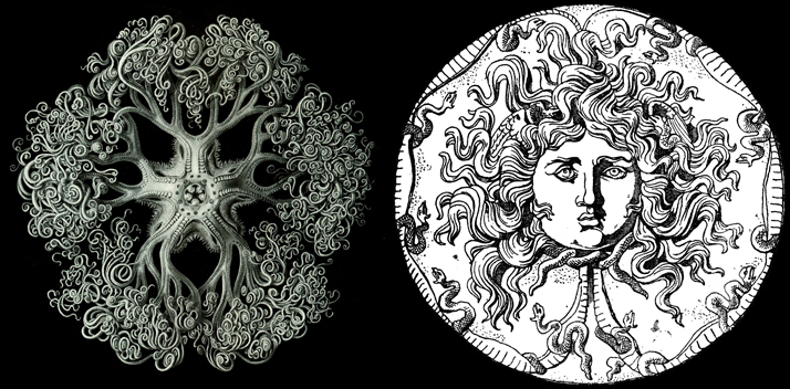 Vlevo Gorgonocephalus caputmedusae (Linnaeus, 1758) - hadice Medusina, vpravo Gorgonocephalus arcticus Leach, 1819 - hadice arktická.