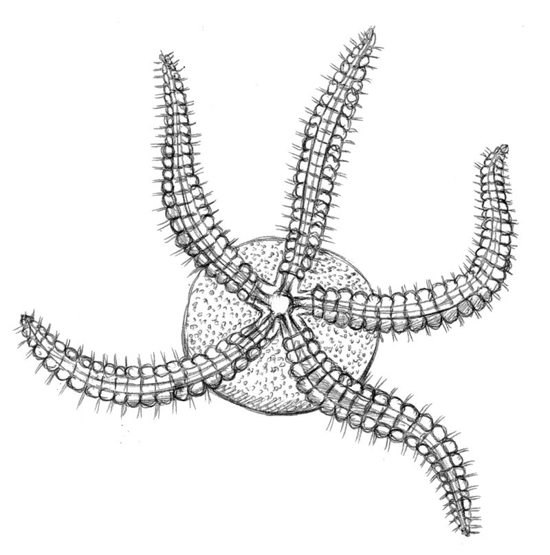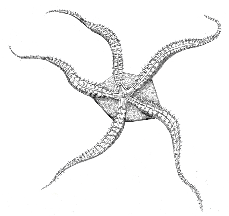 Rameno druhu Archegonaster pentagonus Spencer, 1951.